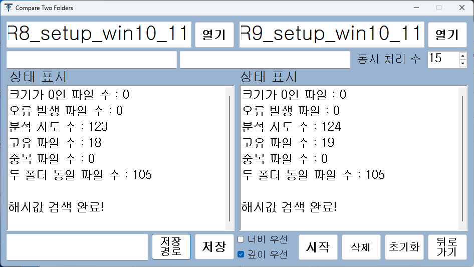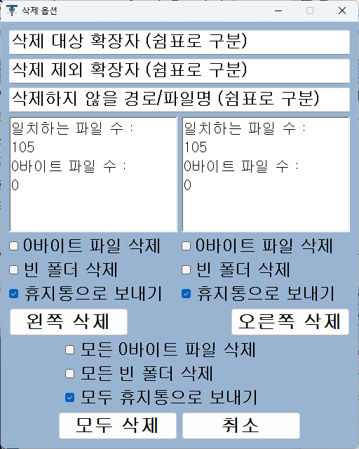 - 폴더 비교 기능: 두 개의 폴더를 지정해 공통된 파일을 검색하고 필요 시 삭제할 수 있습니다.