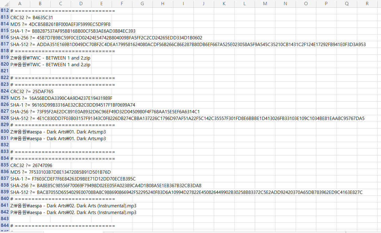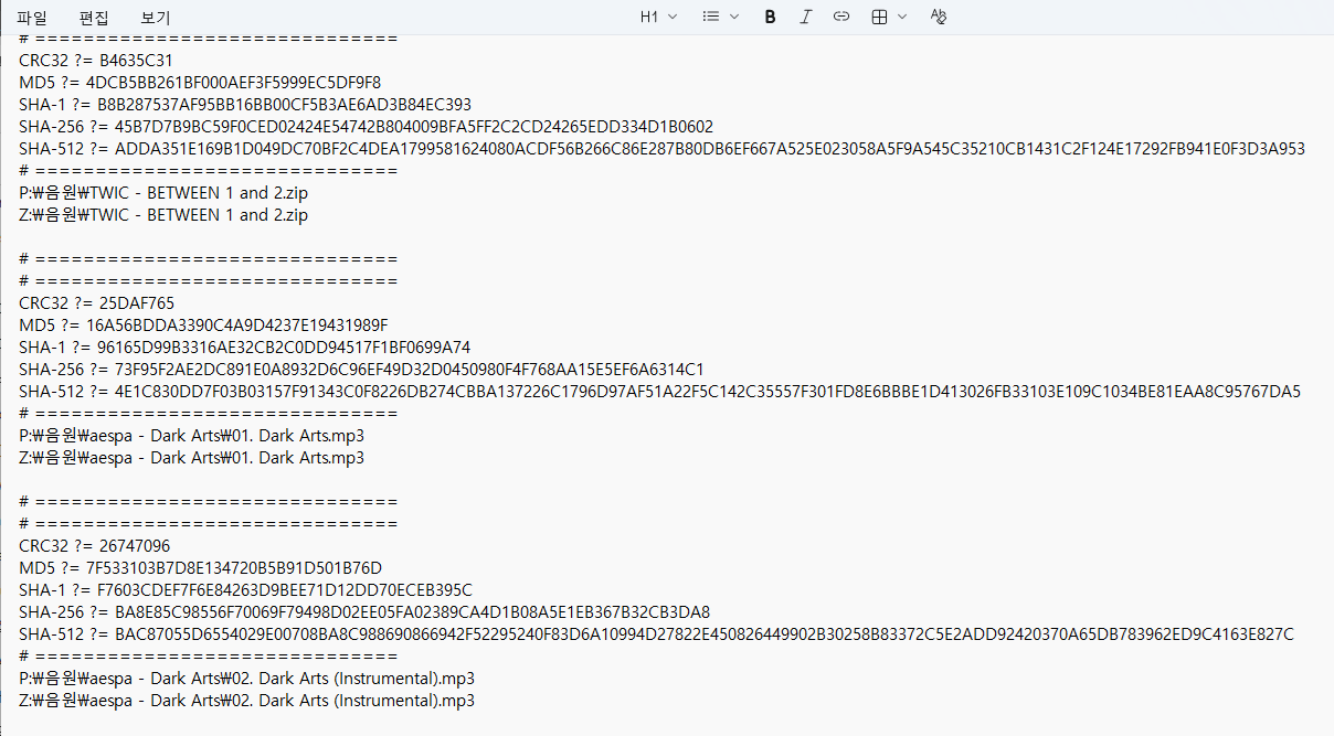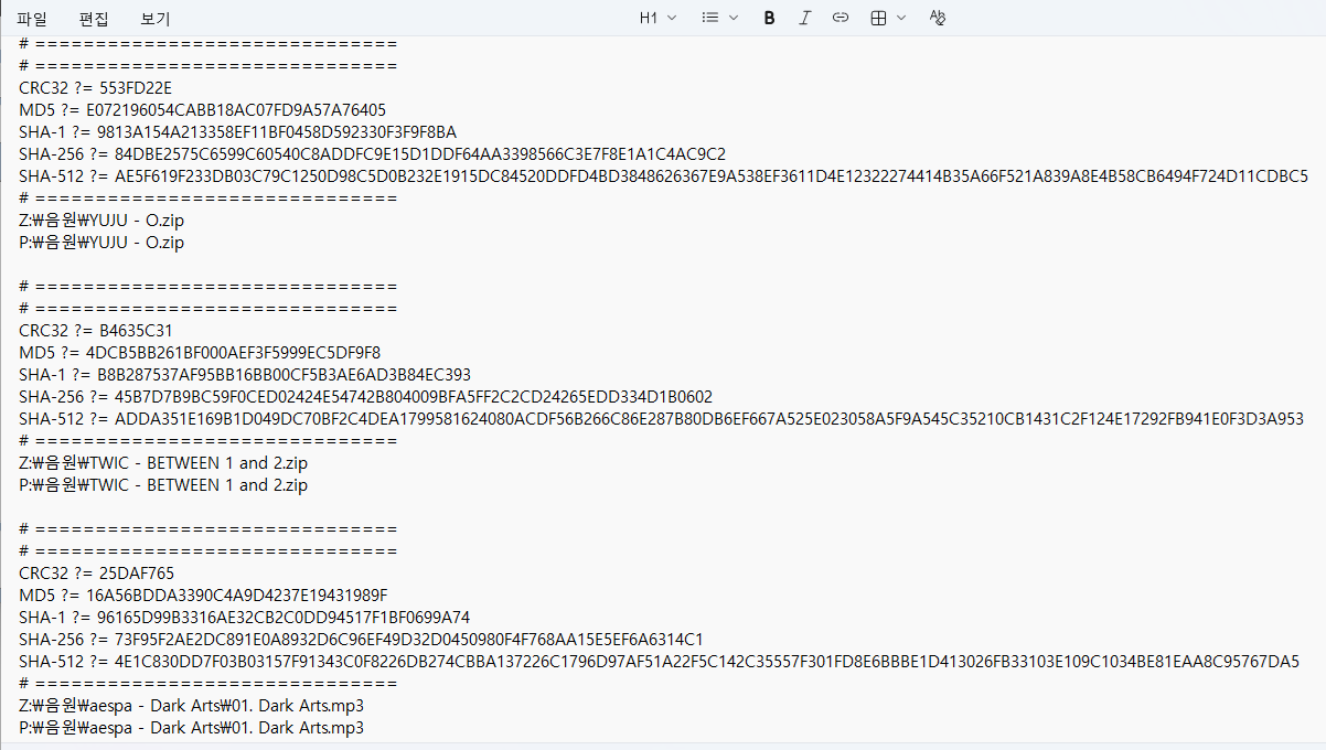 - 단일 해시값 확인: 특정 파일의 해시값을 계산해 고유한 식별자로 활용할 수 있습니다.