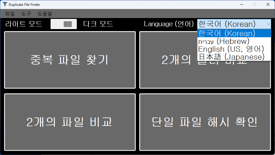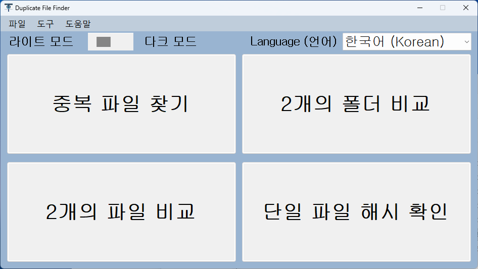 이러한 불편함을 보완하기 위해 제가 직접 Duplicate File Finder라는 프로그램을 만들어보았습니다.