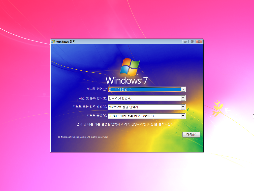 윈도우 7을 올려봅니다.